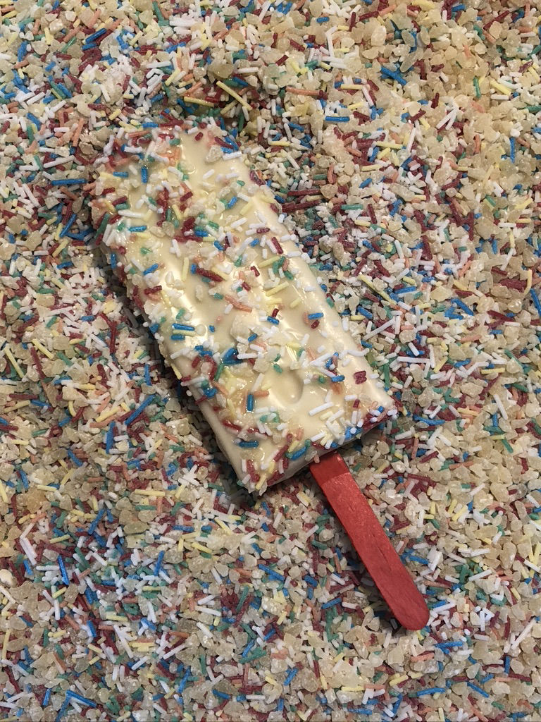 Sie sind auch noch mit Schokolade überzogen und werden oft mit einem speziellem Topping aufgepept.