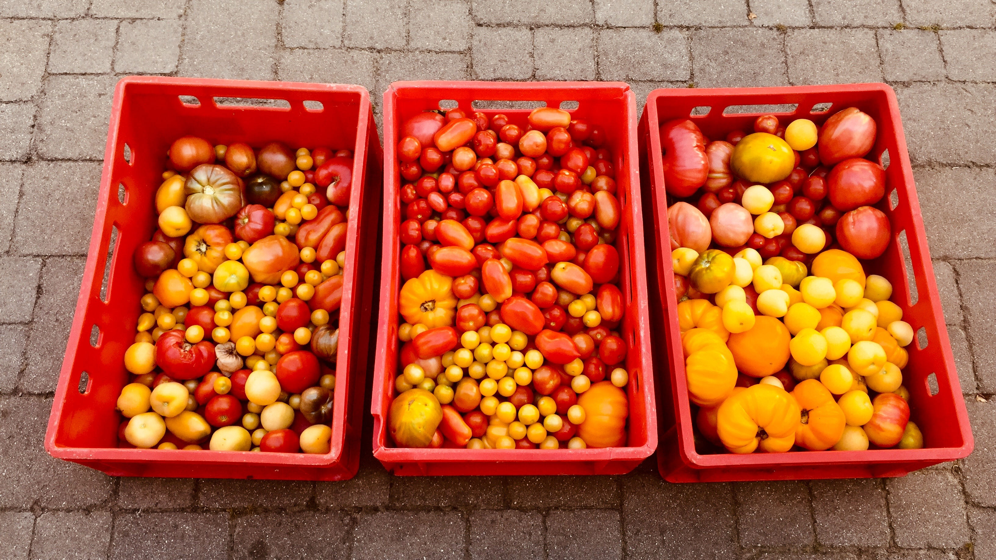 Und erst wenn wir Ketchup machen werden sie gepflückt. Bis zu diesem Zeitpunkt dürfen sie an der Pflanze wachsen und geschmacklich ausreifen. Dadurch müssen sie nicht irgendwo nachreifen.