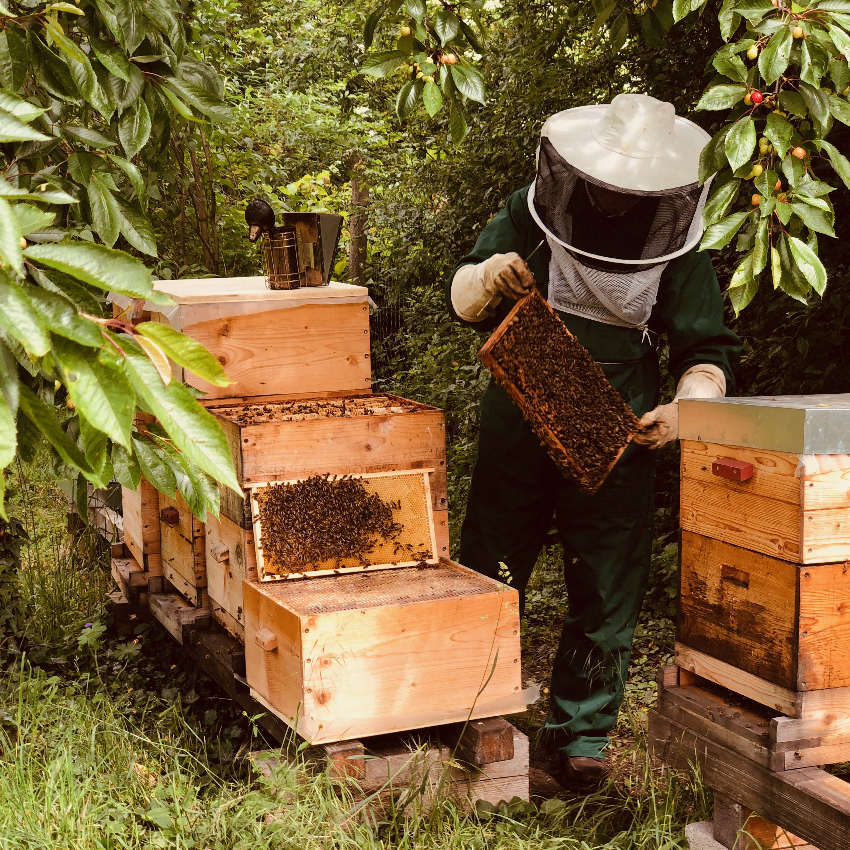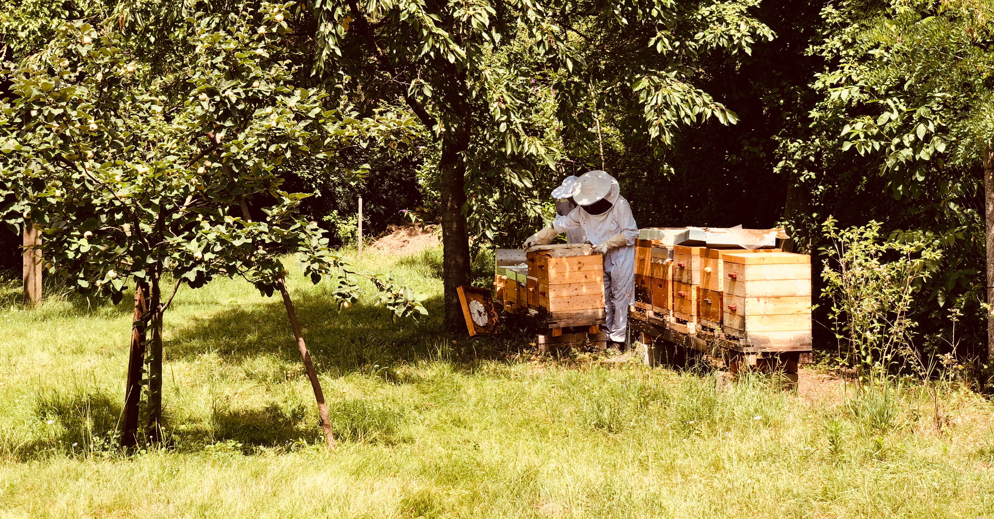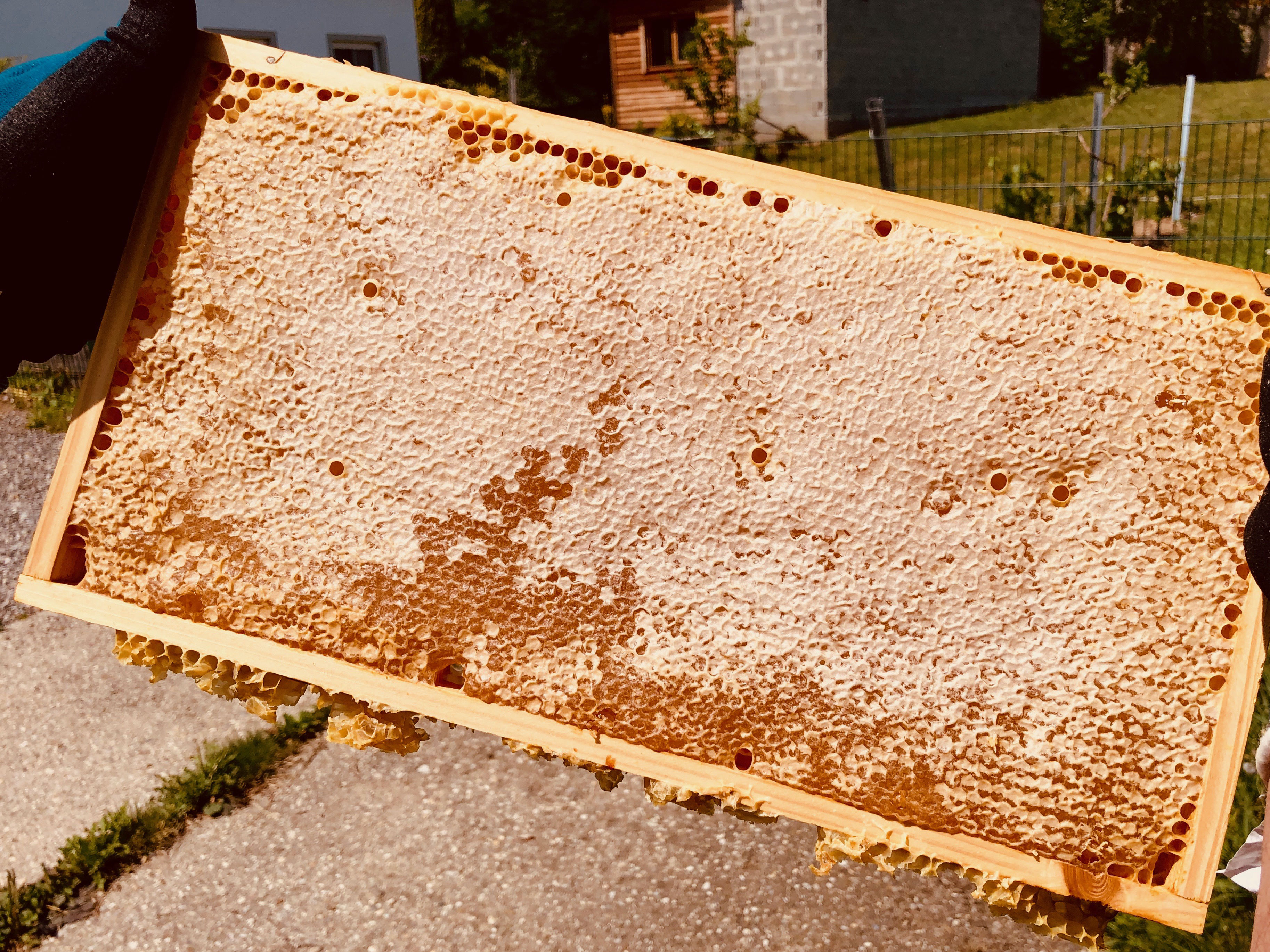 Natürlich braucht man in einem gesunden Garten auch Bienen. Darum haben wir viele fleißige Helferlein bei uns im Obstgarten, die brav Honig erzeugen und natürlich helfen alle Blüten zu bestäuben.