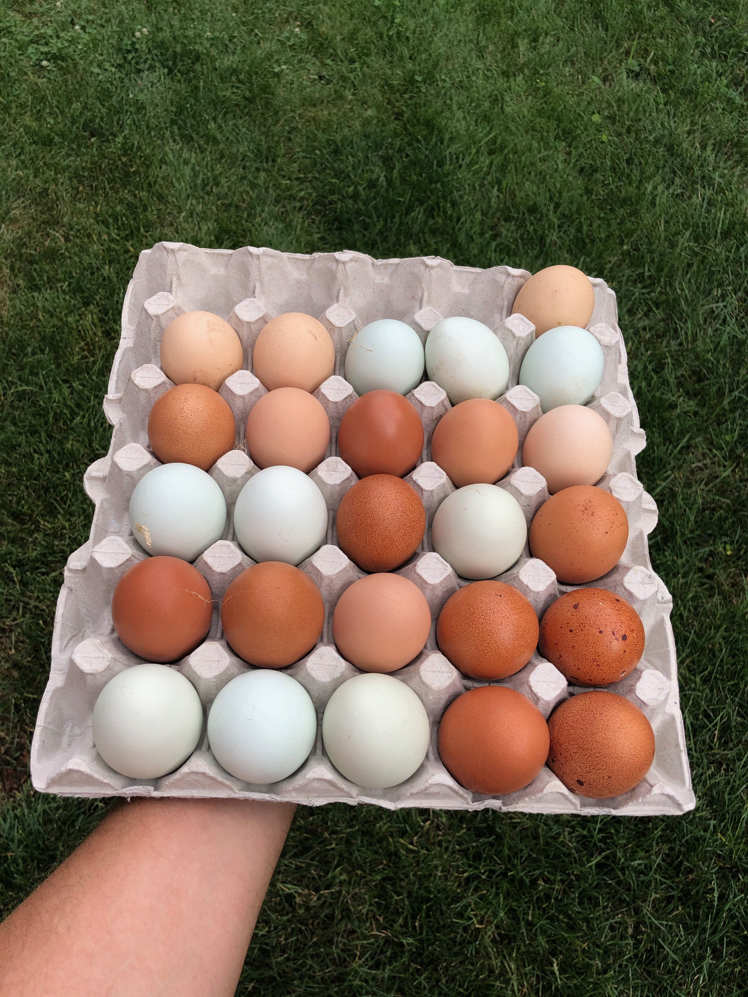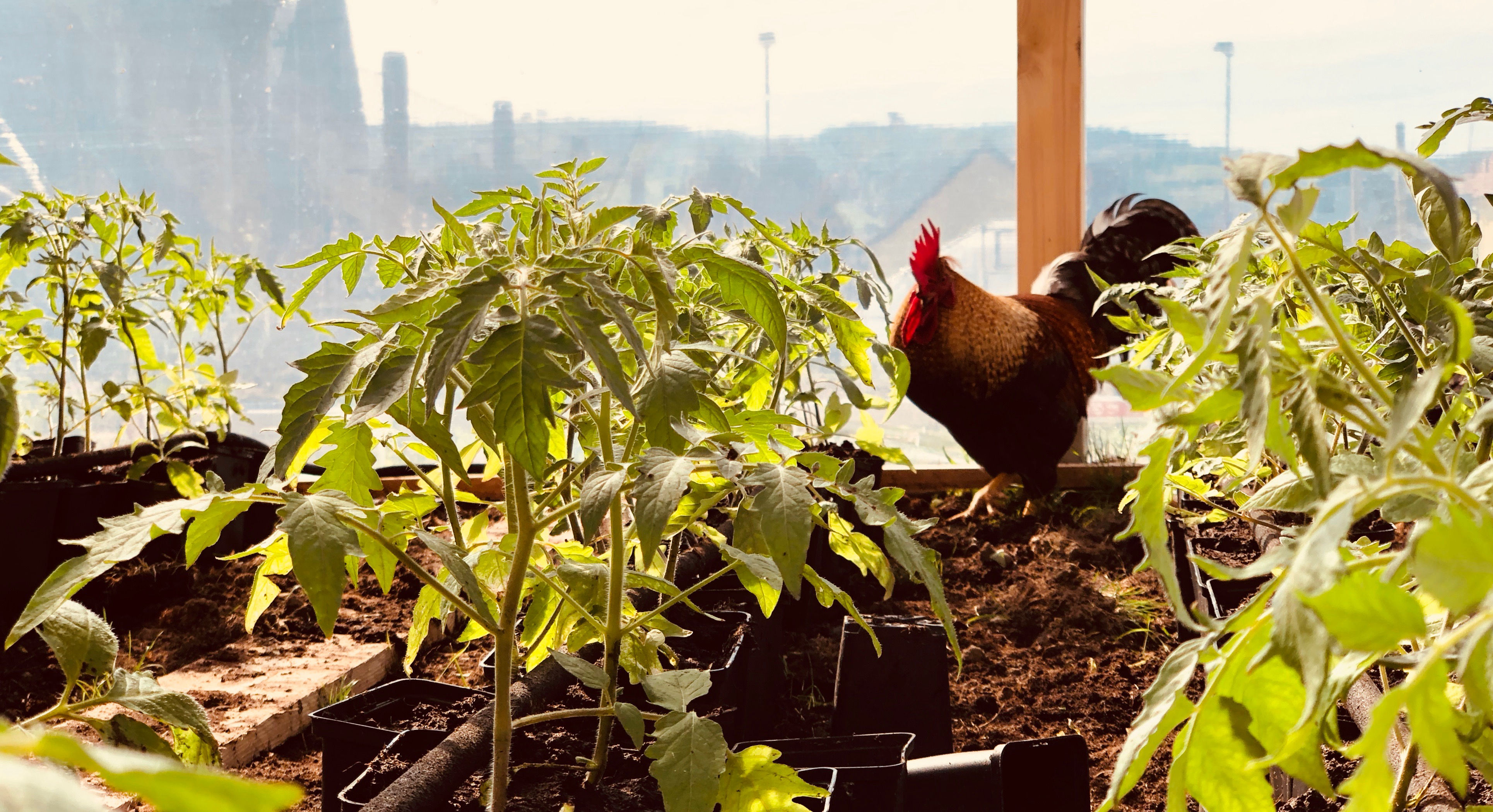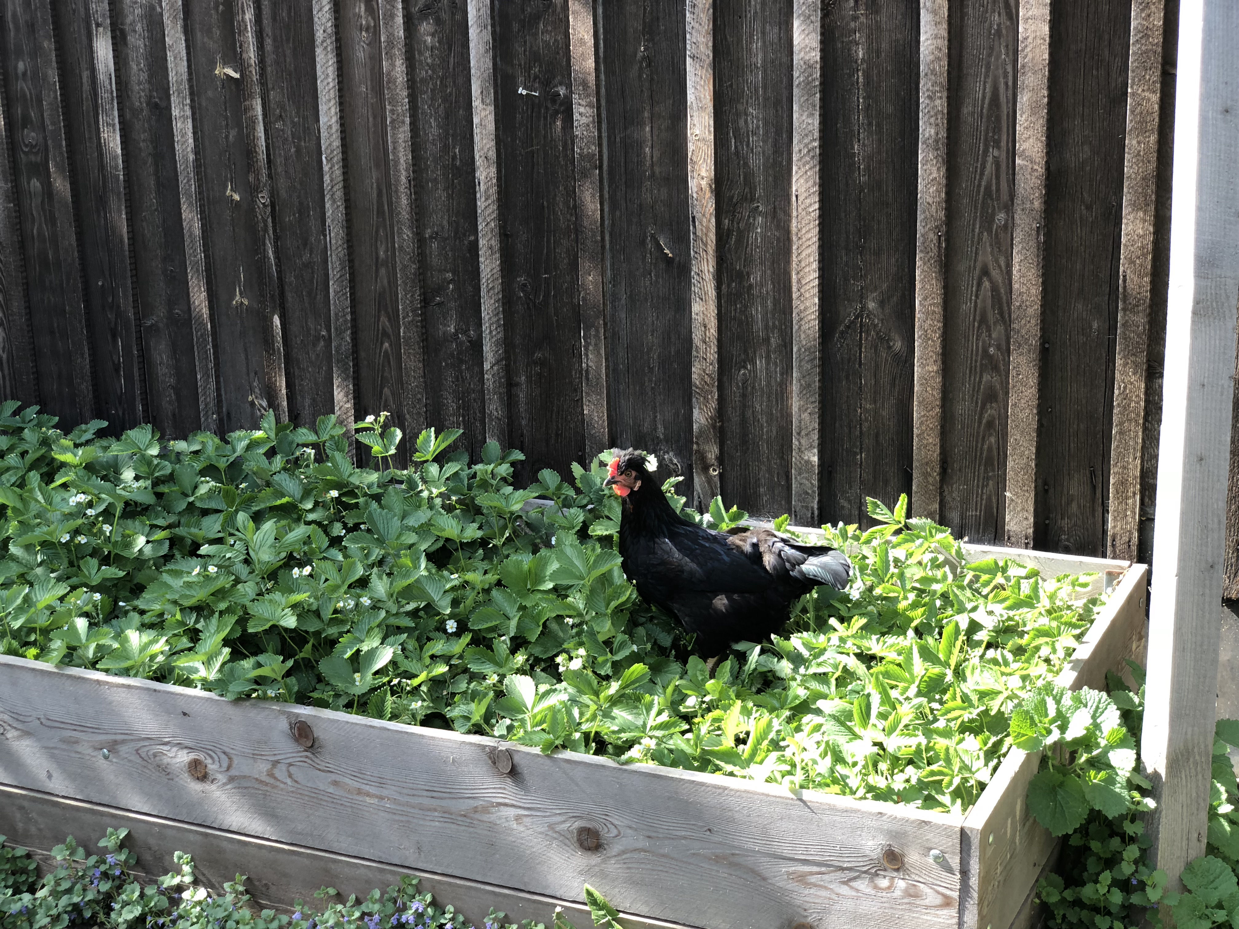 Unsere Hühner sind sicher auch sehr glücklich bei uns. Sie können im ganzen Garten herum laufen und jede Ecke nach leckeren Würmern durchsuchen. Wir haben auch einen braven Hahn der unsere Hennen herumführt und beschützt.