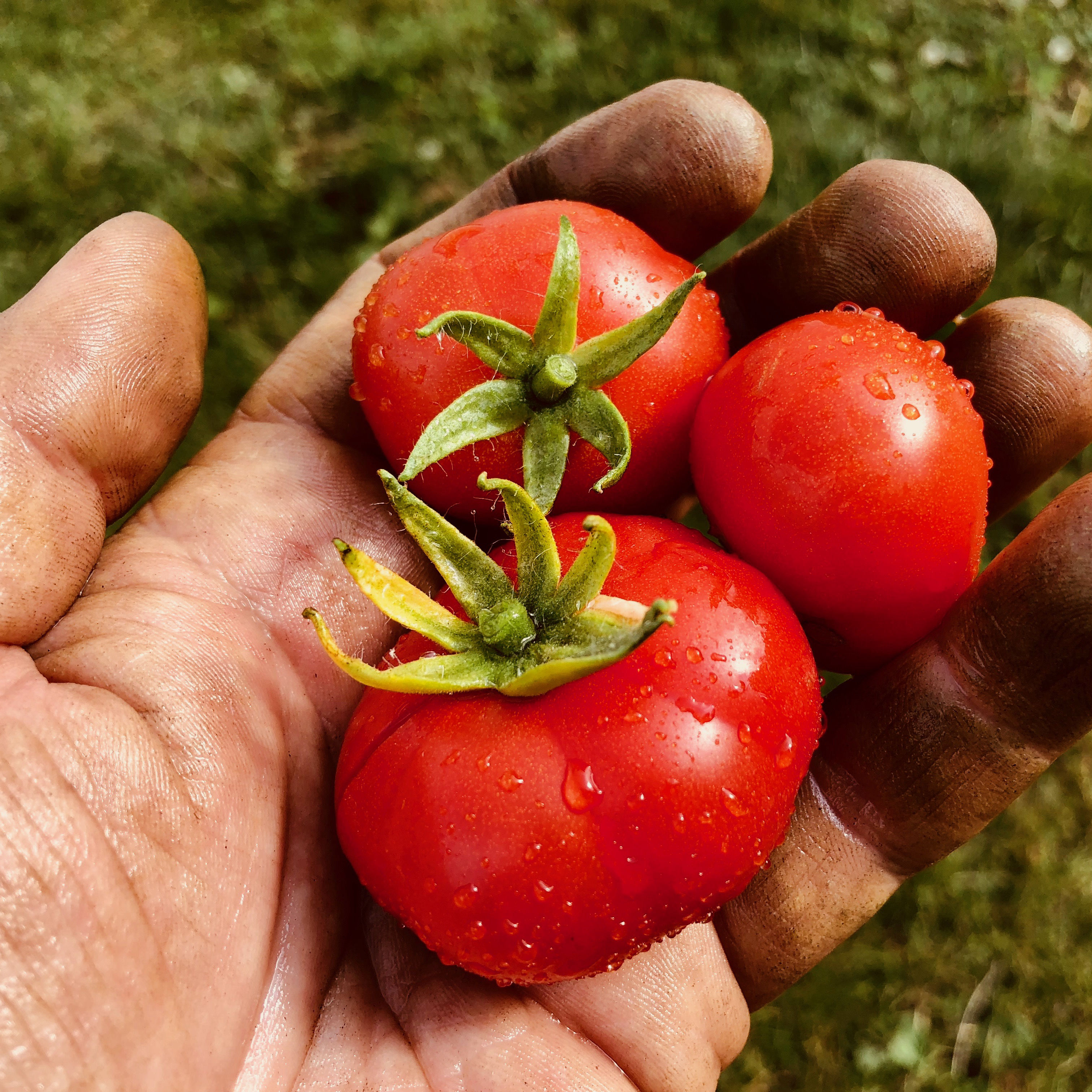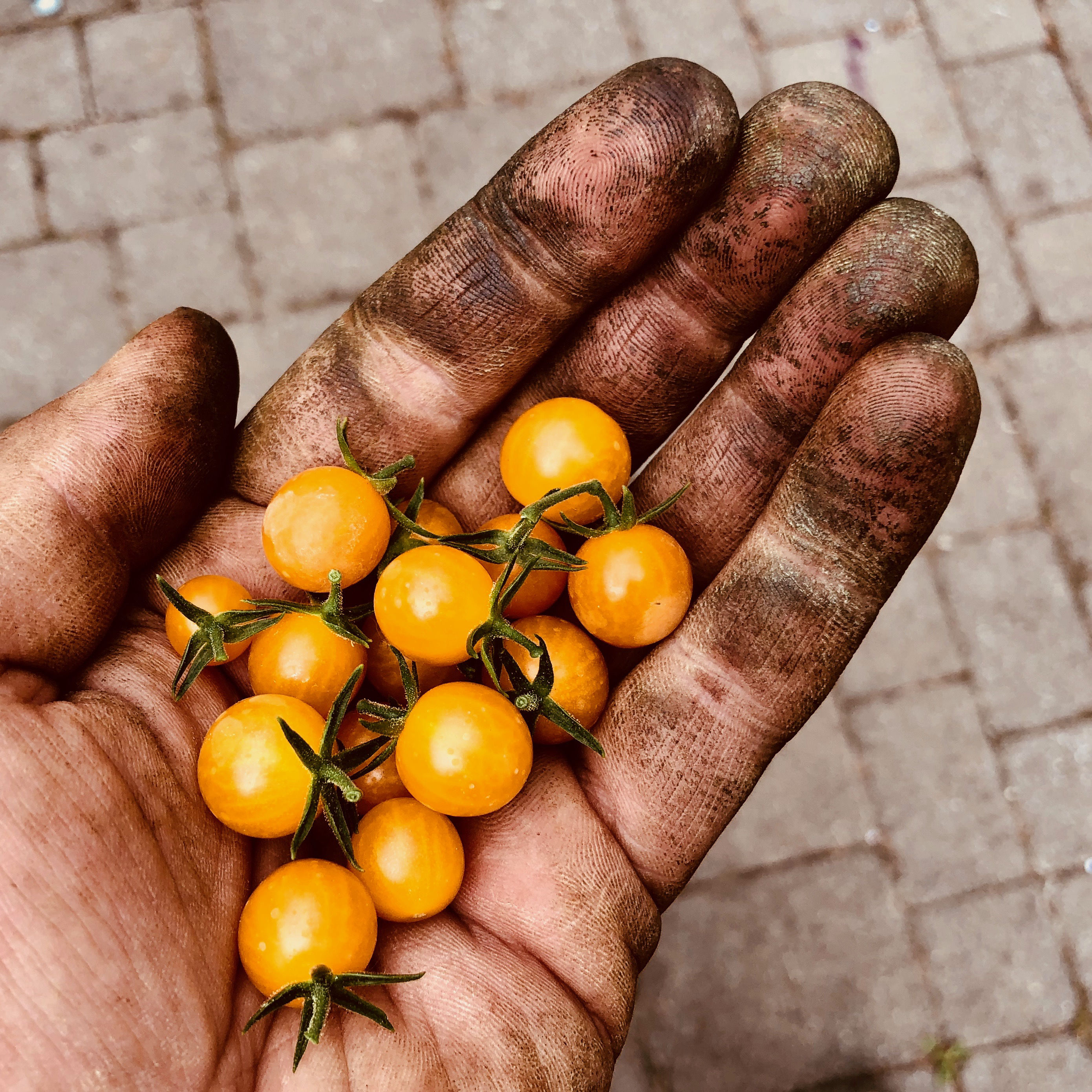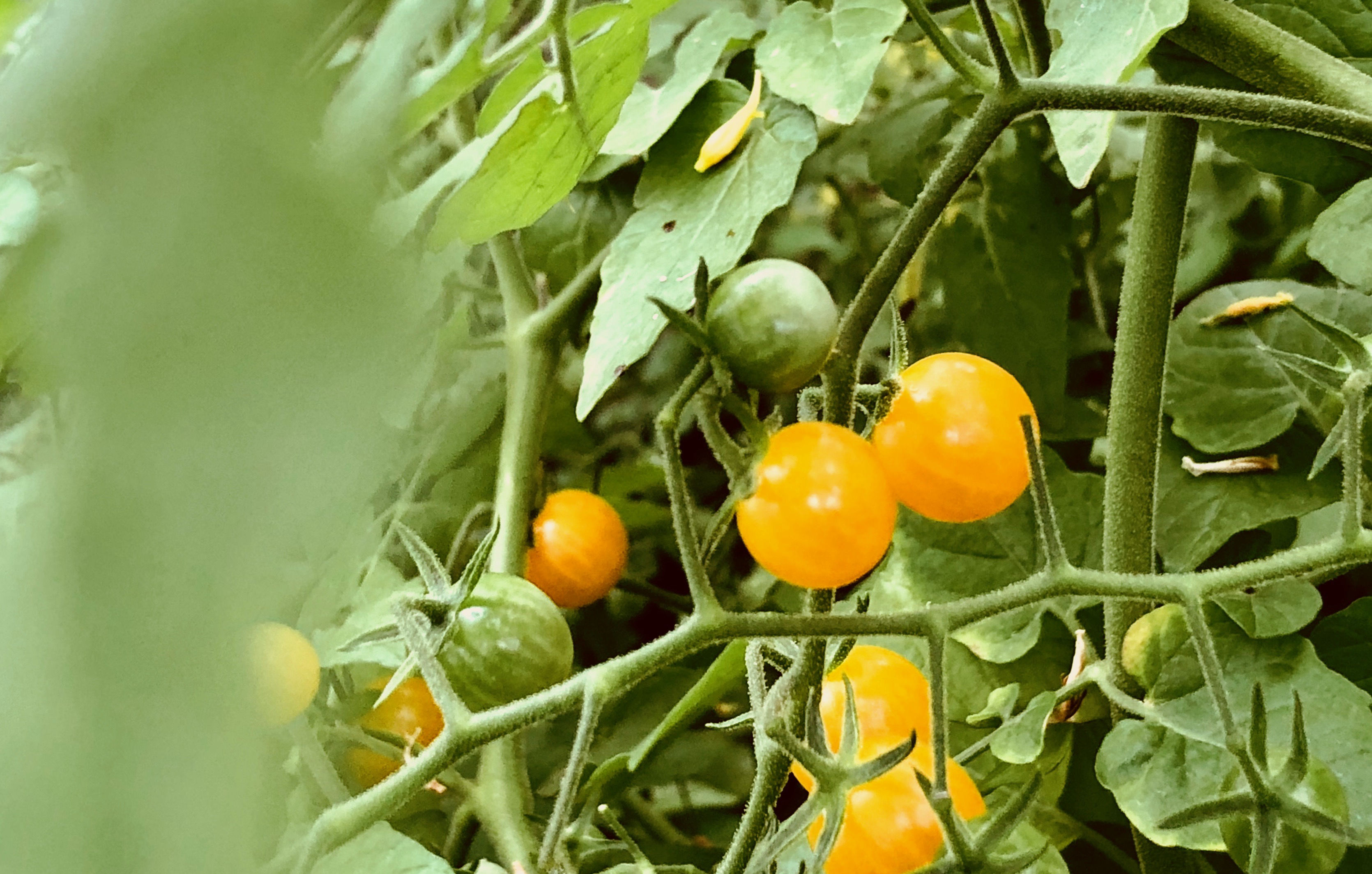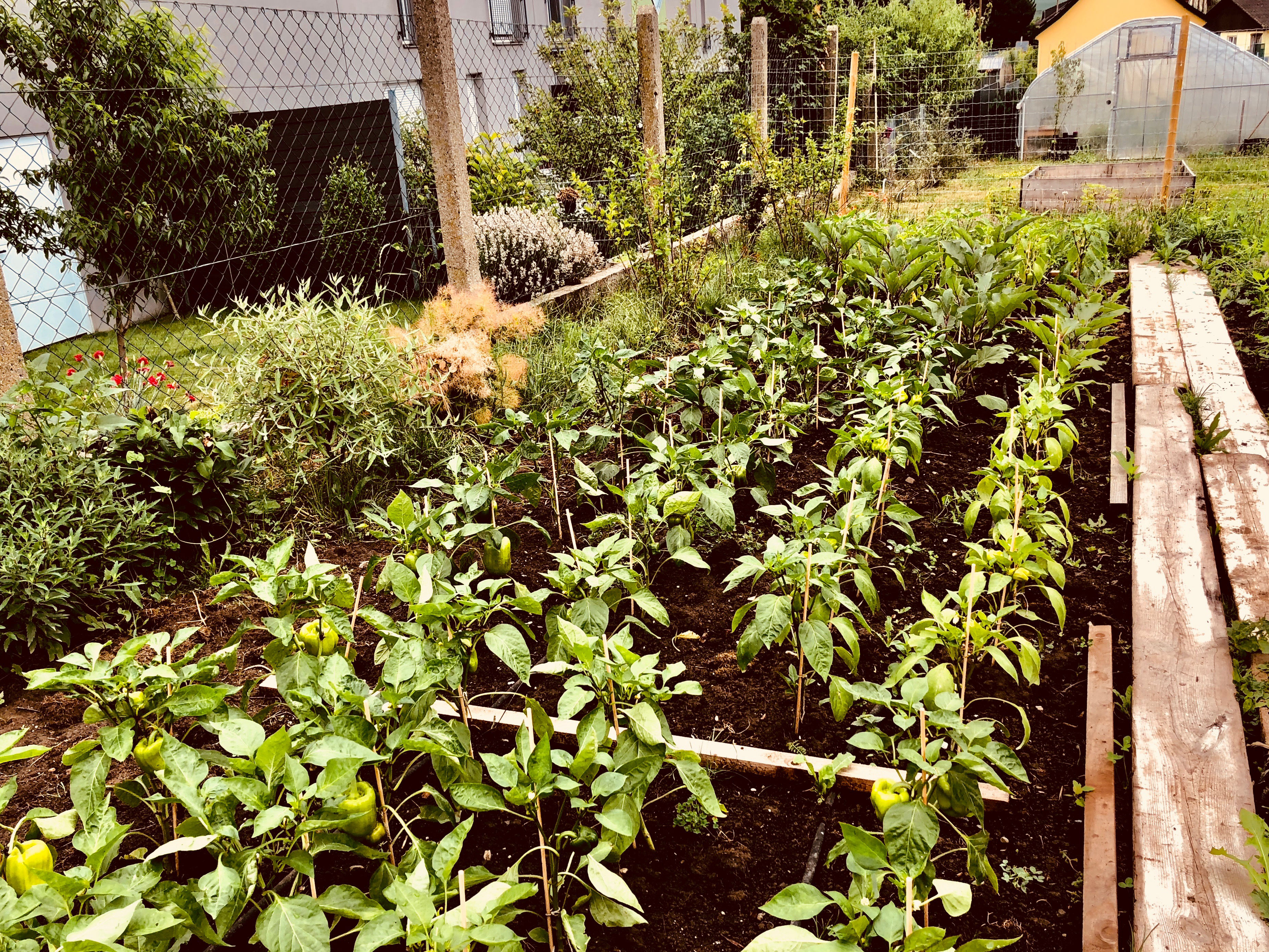 In unserem Gemüsegarten, Obstgarten und Folientunnel ernten wir selbst auch vieles an Obst, Gemüse, Kräutern, Salat und Früchten.