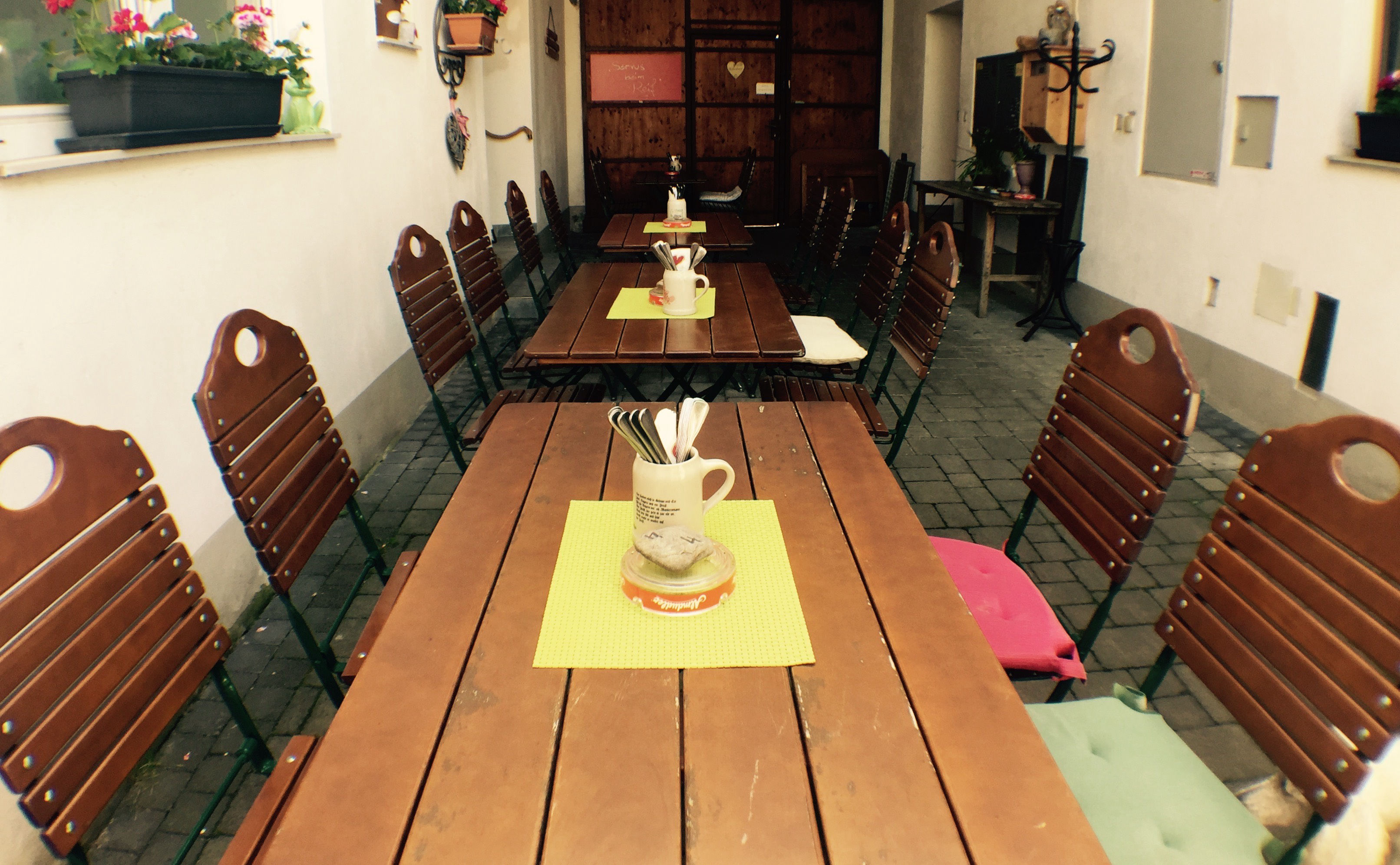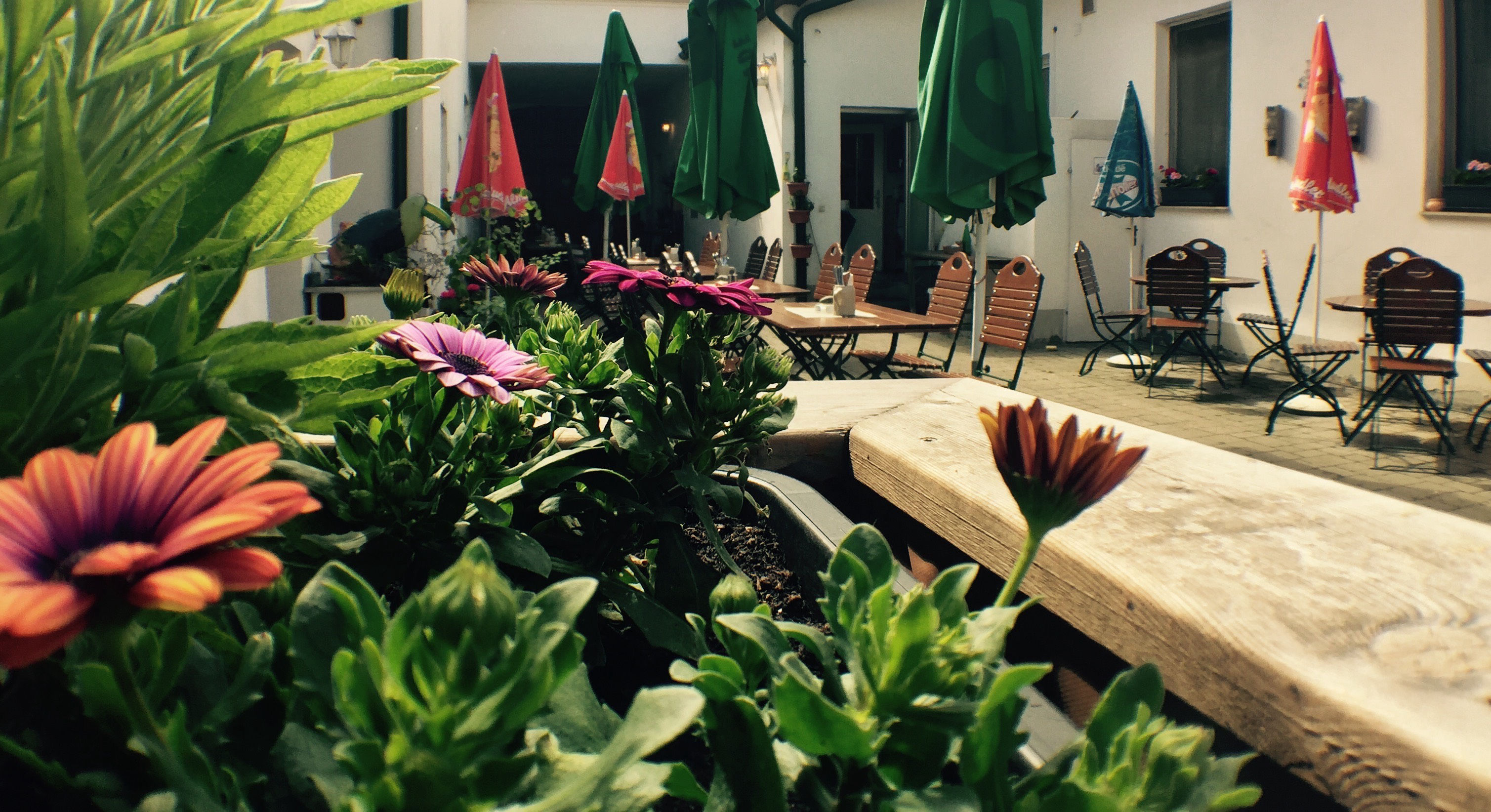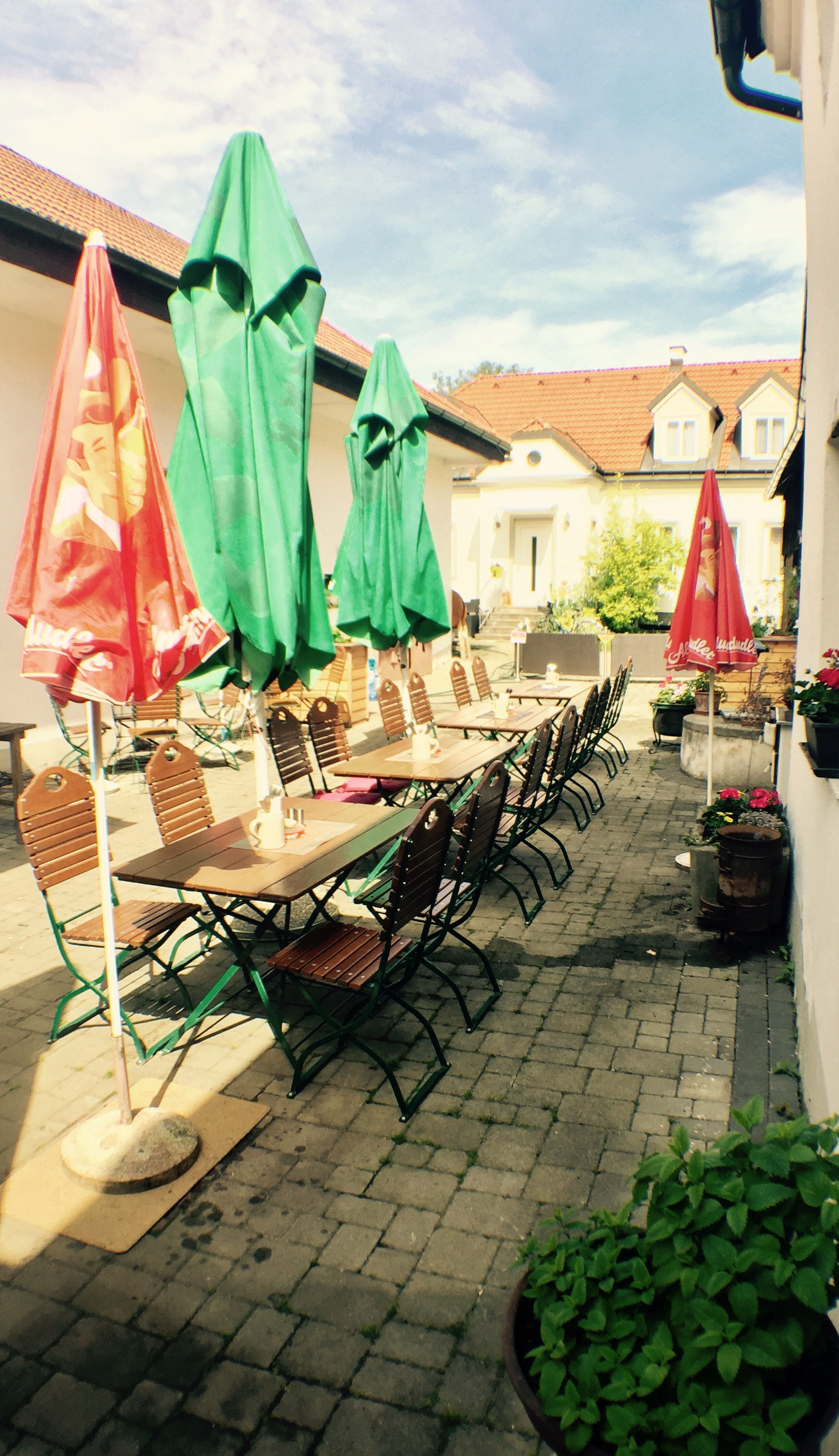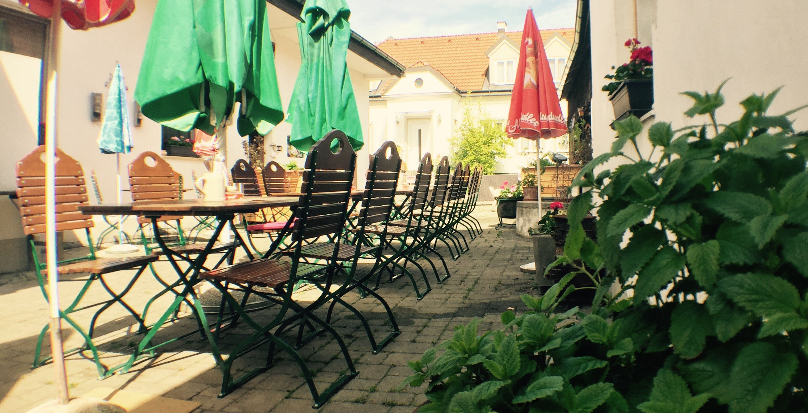 Und natürlich ist es im Schanigarten am schönsten. Da kann man die Seele baumeln lassen und gemütlich das schöne Wetter genießen. Dazu noch ein paar kühle aufgespritze Säfte und die Welt ist wieder in Ordnung.
